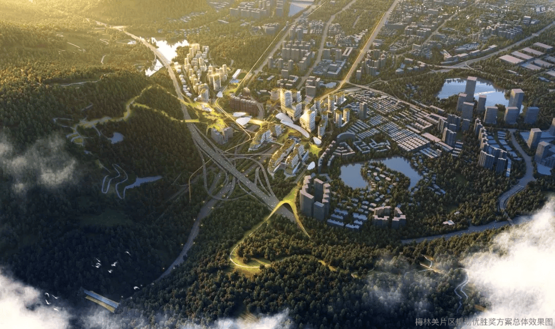 梅林关是以交通枢纽、产业集群、商业核心与科教人文为战略规划的世界级“中央活力生活区”,2024年10月,龙华区正式官宣:梅林关片区将全面对标纽约哈德逊城市广场、巴黎拉德芳斯区,打造一座“垂直立体的轨道上盖之城”,总投资规模近700亿元,由中建三局集团有限公司深度参与整体开发运营,将梅林关打造为“大湾区数字经济核心引领区、数字科创先锋示范区”,改造范围约4.63平方公里,预计新增开发量180万平方米,推动片区年总产值突破1500亿元,创造近6万个高端就业岗位。