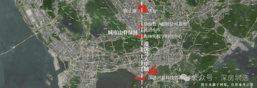 港深科技中轴之上,向南连接河套深港科技创新合作区、福田CBD,向北连接坂雪岗科技城,享有龙华福田双中心配套服务。