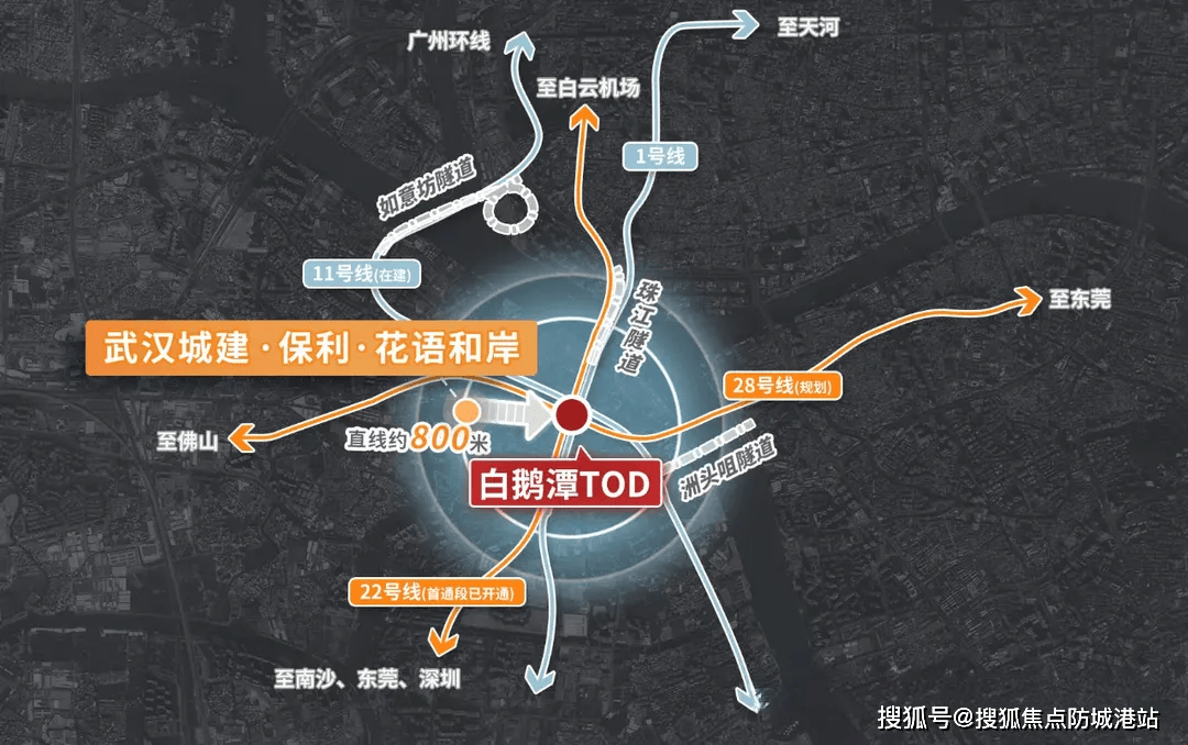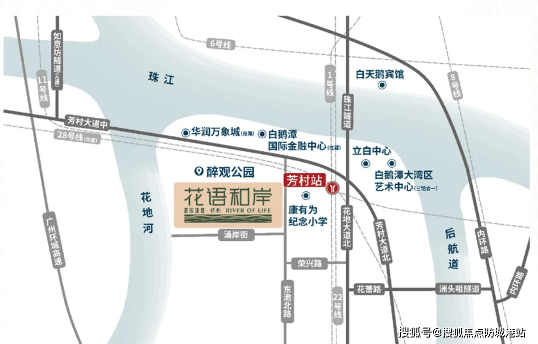 地铁出行是亮点中的亮点。项目步行约800米可到达地铁1号线号线作为广州的黄金地铁线路,串联起天河、越秀、荔湾等核心区域,通勤体育西、北京路等商圈十分方便。更值得期待的是,芳村站将成为四线合一的超级枢纽,除了已开通的1号线号线号线号线作为广州的环线地铁,可直达琶洲、天河公园等重要区域,实现无需换乘即可畅达全城;22号线换乘直达广州站、广州南站等重要交通枢纽;规划中的28号线则定位为跨城快线,未来将串联起佛山、广州、东莞等城市,进一步扩大出行半径。