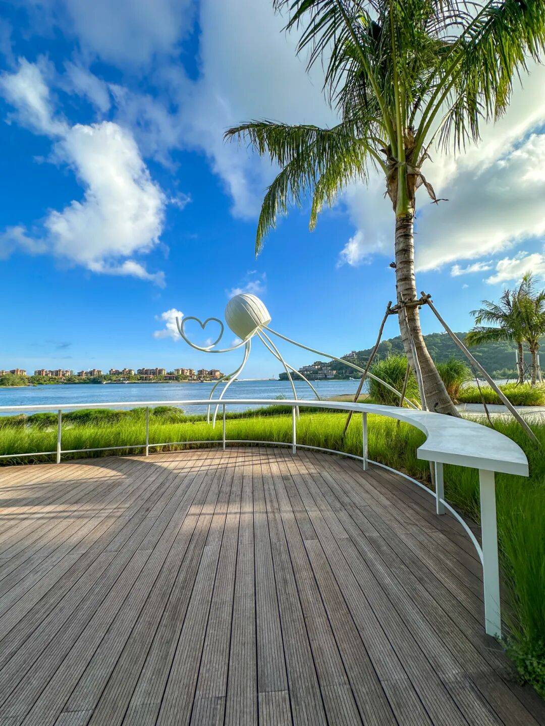湾海的入口,生活的出口。大海与公园的相逢成就了蓝绿交织的悠然世界,探索人与自然的连接艺术,天与云、树与水,绿影荫浓心向自由。