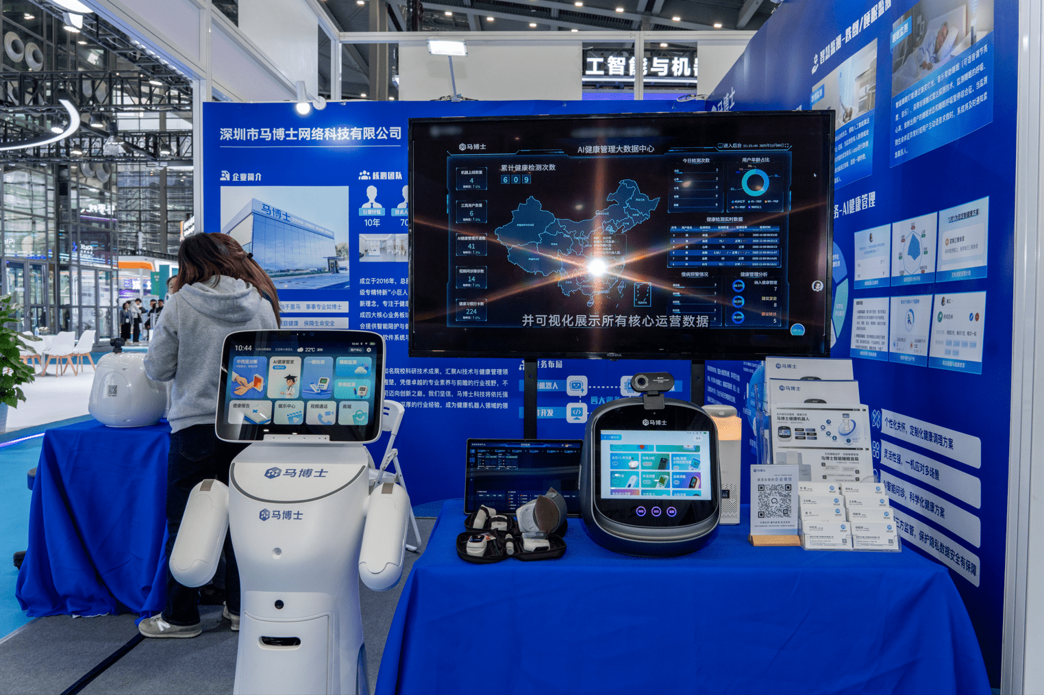 此外,健康机器人还具有数据精准、实时监测等优势。马博士健康AI机器人通过智能感知和实时数据分析,能够准确捕捉用户的健康信息,并及时反馈给用户和医生,为疾病的早期发现和治疗提供有力支持。