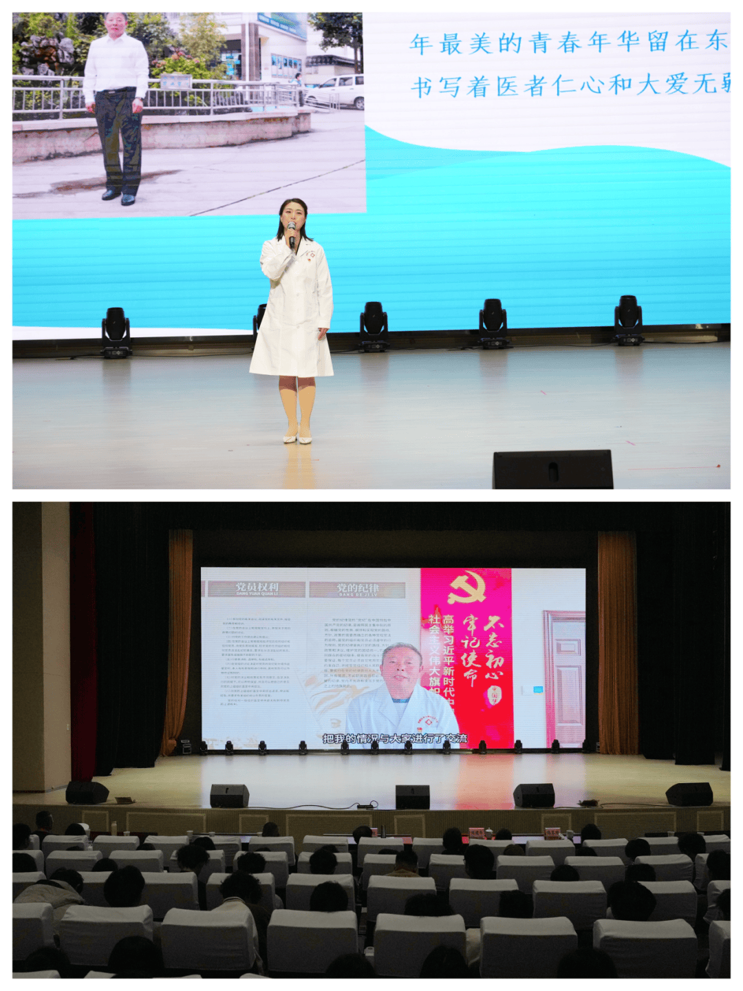 宣讲员巴小燕分享了“全国乡镇卫生院优秀院长”姚所良的故事。姚所良37年如一日,扎根麒麟区东山镇卫生系统,把最美好的青春年华献给了山区的卫生健康事业,用医者仁心、实际行动诠释了学医时的神圣誓言。姚所良通过视频寄语曲医学子,作为医学生,要刻苦学习,扎实学好专业知识;要涵育医者仁心,服务好百姓群众;要勇于扎根基层,在奉献中才能更好实现个人价值。