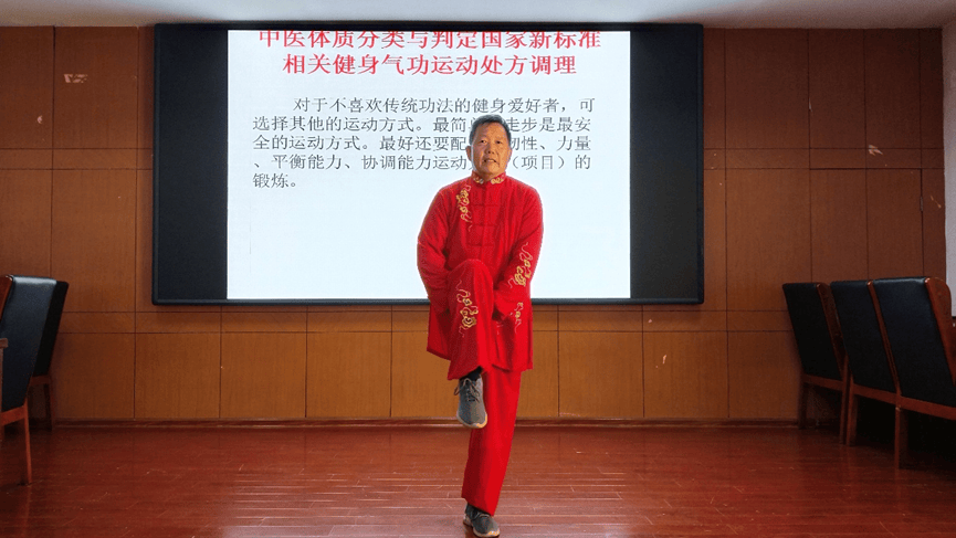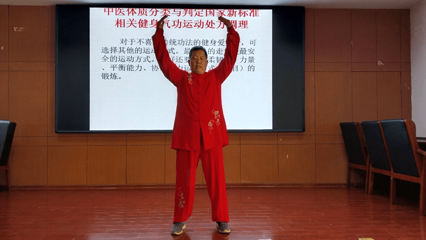 现场演示针对九大体质创编的健身气功单方与综合功法,指导参会人员开展自我健康评估,授课内容言简意赅、通俗易懂,新编功法简单易学、实用性强,得到在场人员一致好评。