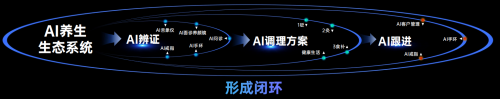 借助AI手环、AI戒指等终端设备,系统持续监测用户健康数据,进行智能风险预警,并追踪用户执行情况与生理反馈,及时提供提醒、鼓励及方案调整。其核心在于构建长期健康行为模式,确保调理方案的落地执行;同时还将用户与服务商之间单次服务升级为持续链接的深度关系,服务商可动态了解用户健康状态,适时调整养生方案,让用户真正收获健康。