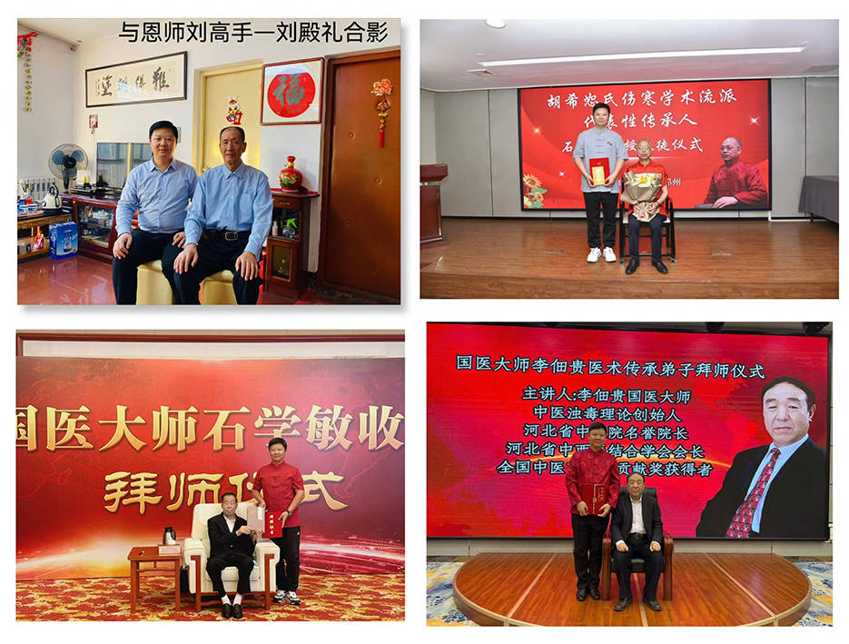 在后续的学术深造中,他更是得到多位国医大师的悉心指导:师从中国第二届国医大师、中国工程院院士、享受国务院特殊津贴的石学敏教授,石教授在针灸与中医药结合治疗疑难病症领域的深厚造诣,为其拓宽了诊疗思路;师从中国第三届国医大师、河北省中医院院长、教授、博士生导师李佃贵,李佃贵教授对中医理论的深刻阐释与临床实践的独到见解,让他受益匪浅,李教授还亲自挥毫书写“兴安名医”赠予他,既是肯定也是期许。此外,他还拜北京中医药大学中医临床特聘专家、北京中医药大学岐黄学院临床导师、胡希恕伤寒学术流派传承人、北京国老中医学院特聘教授石应轩为师,成为其得其真传的入室弟子,由此成为“胡希恕氏伤寒流派”三传弟子,深耕经方理论与临床应用。